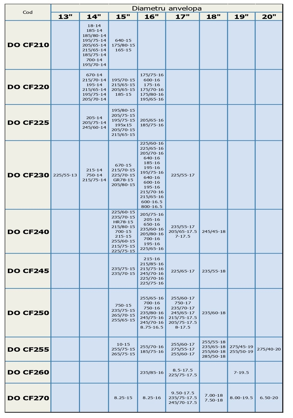 | DO CF250 | 250 | 750-15 235/75-15 265/70-15 255/65-15 |